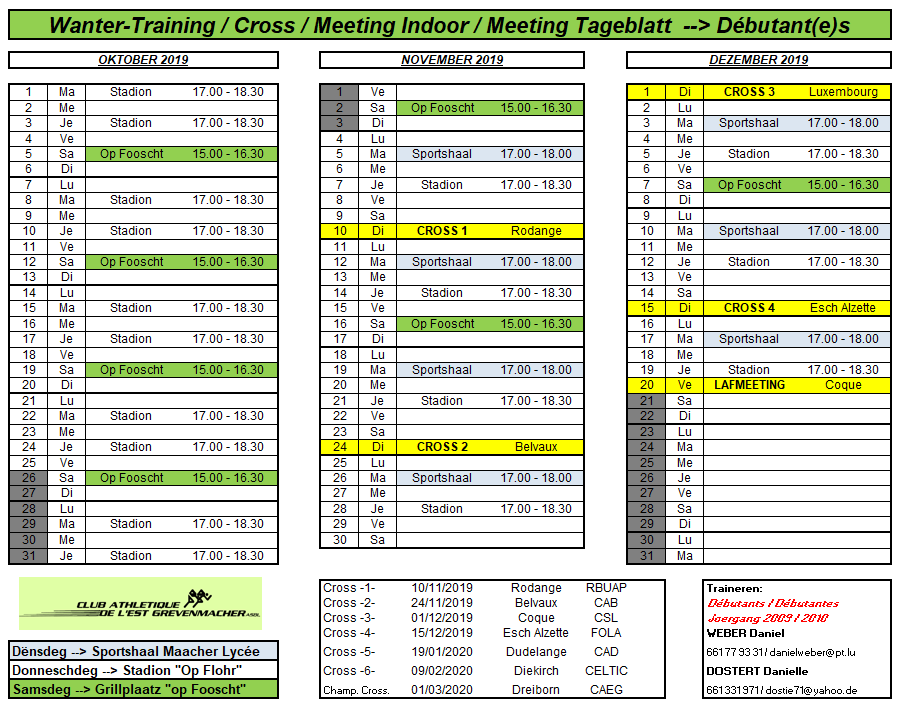 Plan d’entraînement hivernal (Octobre à Décembre 2019) – Débutants – CAEG